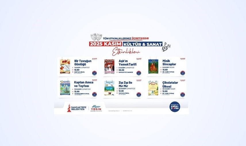 Sancaktepe Belediyesi, kasım ayında da ilçe sakinlerini birbirinden renkli kültür ve sanat etkinlikleriyle buluşturuyor. Etkinlikler her yaştan katılıma açık ve ücretsiz olarak Emek, Mevlana, Yenidoğan ve Samandıra kültür merkezlerinde gerçekleştirilecek.