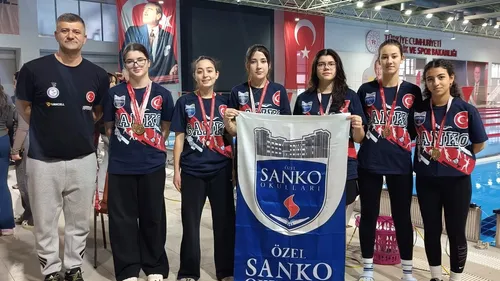 SANKO Okulları Genç Kız Yüzme Takımı, Gençlik ve Spor Bakanlığı'nın Okullar Arası Gençler Yüzme Bölge Şampiyonası'nda birinci oldu.