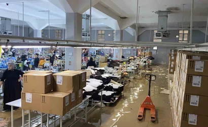 Şiddetli yağış sonrası bir tekstil fabrikasını su bastı. Fabrikada bulunan işçiler, biriken suyu tahliye etmek için uzun süre çalıştı; tahliye çabaları, iş yerindeki operasyonların ve çalışanların güvenliğinin sağlanmasına odaklandı.
