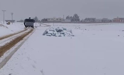 ŞANLIURFA'NIN CEYLANPINAR İLÇESİNDE KAR YAĞIŞI NEDENİYLE KAPANAN YOLU İLÇE EMNİYET MÜDÜRLÜĞÜNE AİT TOMA AÇTI.