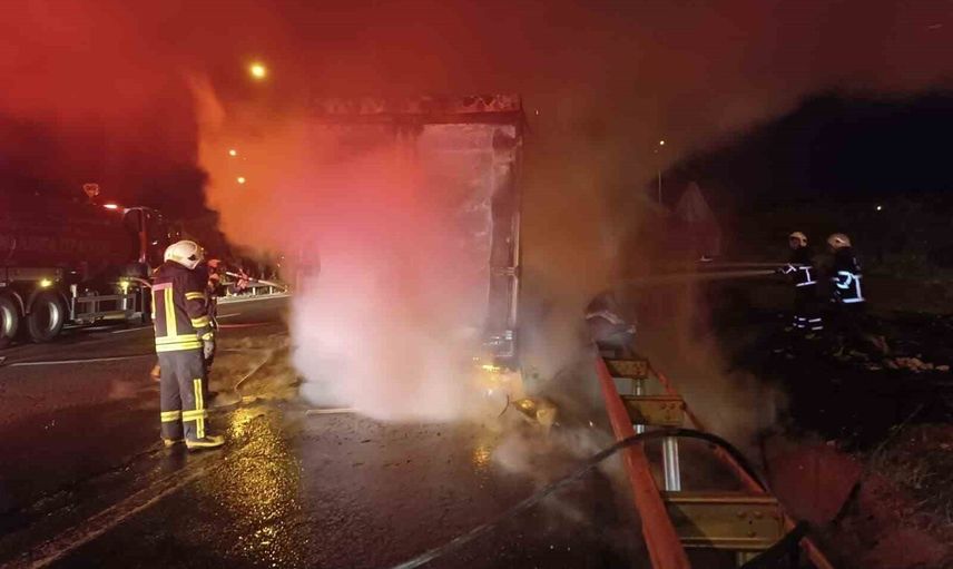Alevleri fark eden sürücü, tırı güvenlik şeridine çekerek durumu itfaiye ekiplerine bildirdi. Olay yerine sevk edilen itfaiye ekipleri yangına müdahale ederek alevleri kontrol altına almaya çalıştı.