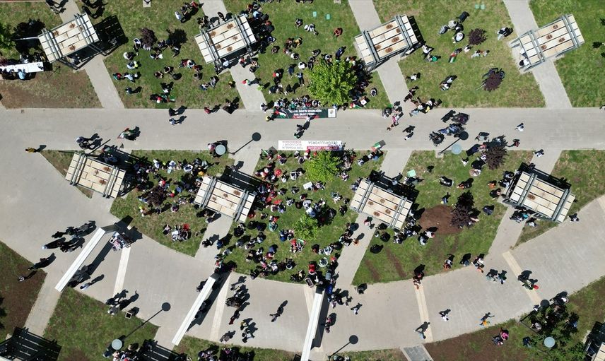 Bir araya gelen katılımcılar, üzerinde şu ifadelerin yer aldığı dövizler açtı: "Allah'ım ümmetin suskunluğunu sana şikayet ediyorum", "Bir yerde çocuklar öldürülüyorsa tüm insanlık suçludur", "Ben sustum, vicdan konuşsun" ve "Konuşmuyoruz çünkü her şey ortada". Bazı çocukların ağızlarını bantla kapatarak katıldığı eylemde, Türk ve Filistin bayrakları da yer aldı.