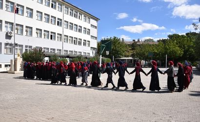 Şanlıurfa'nın Siverek ilçesinde lise öğrencilerinden Sumud koreografisiyle filoya destek