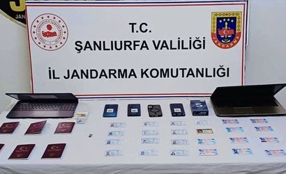 Şanlıurfa'nın Suruç ilçesinde, sahte sürücü belgesi düzenleyerek sattıkları gerekçesiyle 4 şüpheli yakalandı. Aramalarda, sahte olan 31 KKTC sürücü belgesi, 11 Türkiye Cumhuriyeti kimlik kartı, 10 sürücü belgesi, 6 pasaport, 2 Suriye geçici kimlik kartının yanı sıra 35 senet, 1 boş senet defteri, 10 pos cihazı, 2 alacak-verecek defteri, 11 cep telefonu, 2 diz üstü bilgisayar, 1 flash bellek, 3 kredi kartı ve 1 kurusıkı tabanca ele geçirildi.