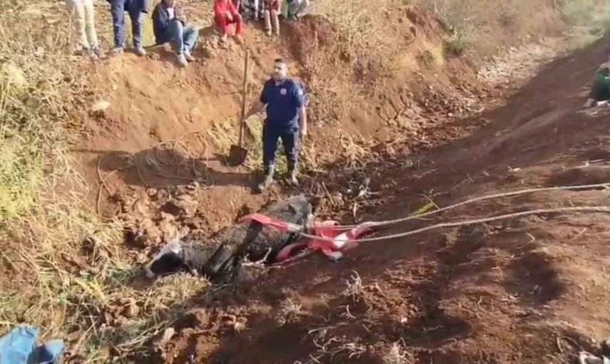 İneğini otlatmak için mahalle kırsalına götüren bir kişi, hayvanın kanal içine düştüğünü ve çamura saplandığını görünce kendi çabalarıyla çıkaramadı ve durumu 112 Acil Çağrı Merkezi'ne bildirdi.