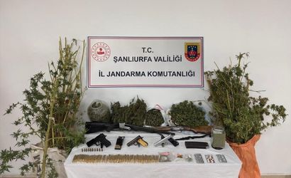 Şanlıurfa'nın Haliliye ilçesinde, İl Jandarma ekiplerince belirlenen adreslere düzenlenen operasyonda çok sayıda uyuşturucu madde ile silah ele geçirildi.