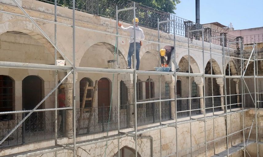 Şanlıurfa’da 6 Şubat 2023'te meydana gelen depremlerde ağır hasar gören tarihi Barutçu Hanı'nda restorasyon çalışmaları başlatıldı.