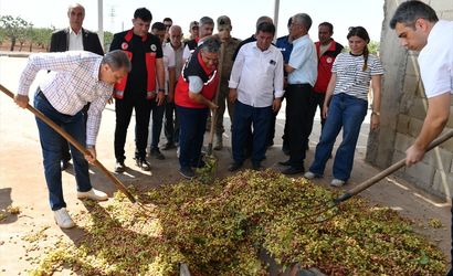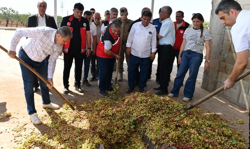 Şanlıurfa Valisi Hasan Şıldak, Türkiye'nin en çok Antep fıstığı üretiminin yapıldığı kentte fıstık hasadına katıldı.