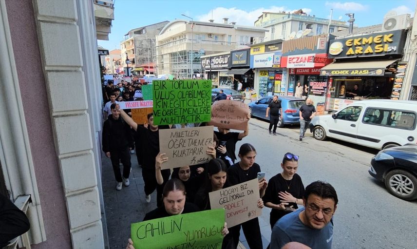 Sakarya'nın Sapanca ilçesinde bir öğretmenin darbedildiği olaya ilişkin gözaltına alınan 2 zanlı adli kontrol şartıyla serbest bırakıldı. Sapanca Anadolu Lisesi öğrencileri, ellerinde taşıdıkları dövizler ile sloganlar atarak öğretmenleri Y.Y.Y. ile Sapanca Şehit Pilot Albay Güneri Ekici Parkı'na yürüdü. Öğretmenler, Türk Eğitim-Sen, Eğitim-Sen, Eğitim-İş, Eğitim-Bir-Sen ve Hürriyetçi Eğitim-Sen sendikalarının üyelerinin de katılımıyla alanda basın açıklaması düzenlendi. Sapanca Mesleki ve Teknik Anadolu Lisesi Müdür Yardımcısı Barış Çetin, burada açıklama yaptı.
