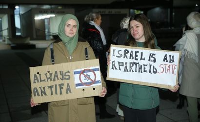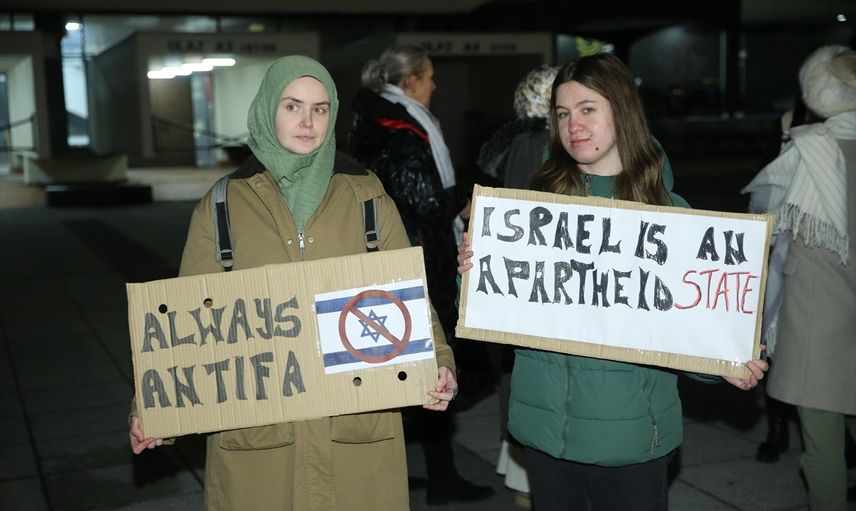 İsrail'in Gazze'ye yönelik saldırılarını protesto edenler, Bosna Hersek Kadın Buz Hokeyi Milli Takımı ile İsrail Kadın Buz Hokeyi Milli Takımı'nın İskenderiye Kültür ve Spor Merkezi'nde oynayacağı maç öncesi spor salonu önünde toplandı. Protestocular, ellerinde Filistin bayraklarıyla İsrail'i protesto ederken, "İsrail bir apartheid devletidir" yazılı pankartlar açtılar.