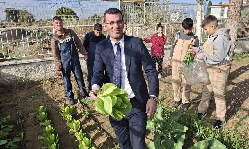 Ziyarette, Özel Eğitim Sınıfı Tarım Alanı öğrencilerinin uygulama bahçesinde yetiştirdikleri ürünlerin hasadı protokol üyeleri ve öğrenciler tarafından birlikte gerçekleştirildi. Uygulamalı tarım çalışması, öğrencilerin öğrenme süreçlerine katkı sağlamayı ve toplumsal katılımı desteklemeyi amaçlıyor.