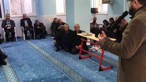 Sarıgöl'de Hüseyin Gümüşlü Camii'nde düzenlenen seminerde 73 ümre yolcusu ibadet usulleri ve sağlık önlemleri konusunda bilgilendirildi.