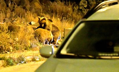 Kars'ın Sarıkamış ilçesinin ormanlarında yiyecek bulmakta zorlanan bozayılar, havaların soğumasıyla birlikte ilçe merkezine inmeye başladı. İlçenin çöp konteynerlerini devirerek buldukları yiyeceklerle karnını doyuran bu ayılara, hem yerel halk hem de yetkililer dikkatle bakıyor.