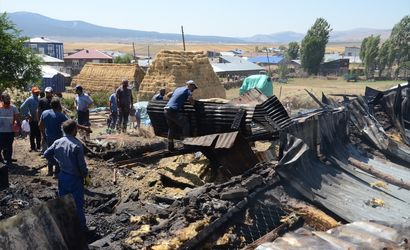 Kars'ın Sarıkamış ilçesinde çıkan yangında, 1 ev, 2 samanlık ve 1 ahır kullanılamaz hale geldi.