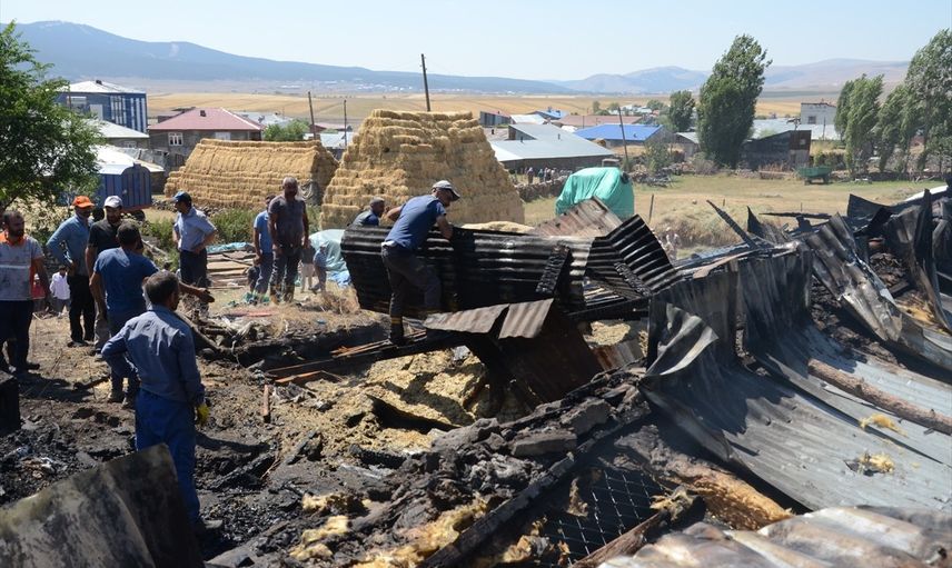 Sarıkamış'ta çıkan yangında 1 ev, 2 samanlık ve 1 ahır kullanılamaz hale geldi