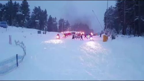 Sarıkamış Kayak Merkezi'nde genç kayakçılar, Bursa'daki yangında ölen Yahya Kemal Usta, Fulya Usta, Zeki Kürşat Yıldız ve Berkin Usta'yı meşalelerle andı.