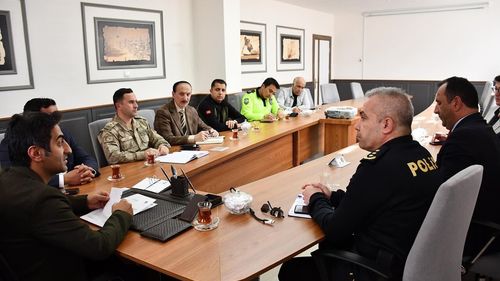 Kaymakam Enis Aslantatar başkanlığında düzenlenen toplantıda karla mücadele, ulaşım denetimleri ve altyapı koordinasyonu önlemleri değerlendirildi.