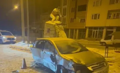 Sarıkamış'ta trafik kazası: Otomobil kayakçı heykeline çarptı, 3 yaralı
