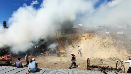 Kars'ın Sarıkamış ilçesinde bir yangın, besicinin kışlık otlarını yok etti. İtfaiye ekipleri olaya müdahale etti.