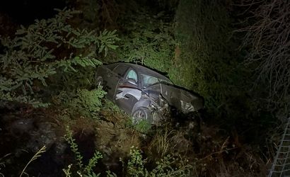 Sarıyer'de iki otomobil yoldan çıkarak ormanlık alana düştü