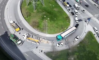 İstanbul'un Sarıyer ilçesinde, Metin Oktay Caddesi üzerinde saat 14.00 civarında meydana gelen kazada, mıcır yüklü hafriyat kamyonu devrildi. Olayda sürücü hafif şekilde yaralandı.