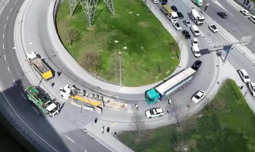 Sarıyer’de mıcır yüklü hafriyat kamyonu devrildi: Sürücü hafif yaralandı