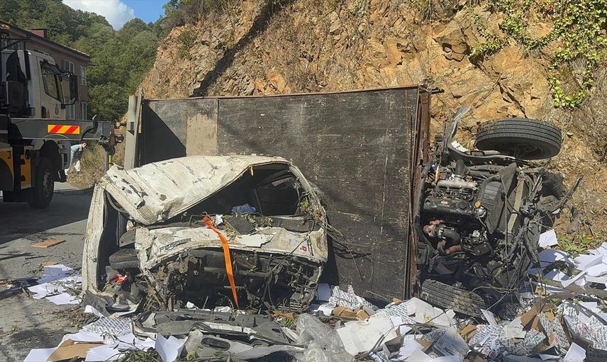 Sarıyer Dereiçi Sokak'ta şarampole devrilen kamyonette 2 kişi yaralandı