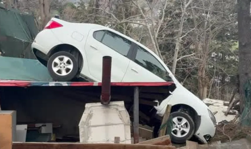 SARIYER’DE SÜRÜCÜNÜN GERİ VİTESTE OLDUĞUNU SANARAK GAZA BASMASI SONUCU KONTROLDEN ÇIKAN OTOMOBİL KAMELYANIN ÜZERİNE UÇTU. KAZADA ŞANS ESERİ YARALANAN OLMAZKEN, ARAÇTA VE KAMELYADA HASAR MEYDANA GELDİ.