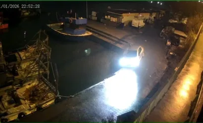 Olay anı, balıkçı barınağının güvenlik kamerasına yansıdı. Görüntülerde otomobilin yoldan çıktığı ve mendirekte asılı kaldığı anlar net şekilde görülüyor. Kazada sürücü yaralanmadı, asılı kalan otomobil ise çekici yardımıyla bulunduğu yerden kurtarıldı.