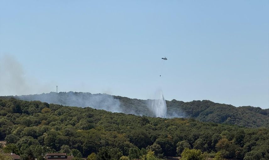 Sarıyer'de ormanlık alanda çıkan yangına havadan ve karadan müdahale ediliyor.