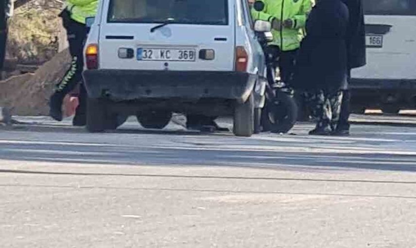 Edinilen bilgilere göre, Cariye E. (66) idaresindeki 32 AGB 367 plakalı üç tekerlekli elektrikli bisiklet ile Ali G. (78) yönetimindeki 32 KC 368 plakalı otomobil kavşakta çarpıştı. Kazada elektrikli bisiklet sürücüsü Cariye E. ile araçtaki yolcu konumundaki İsmail Hakkı E. (69) yaralandı.
