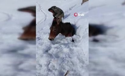 Dağda karda mahsur kalan katırlar kurtarıldı