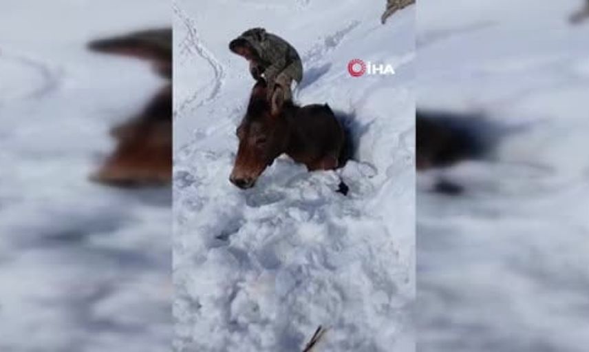 Edinilen bilgilere göre, artan kar yağışı sonrası dağda bulunan katır sürüsü ilerlemekte güçlük çekti ve kar altında mahsur kaldı. Devriye görevi yapan güvenlik korucuları tarafından fark edilen sürüde, katırlardan birinin donarak telef olduğu, bir katırın ise yarıya kadar kara gömülerek hareket edemediği tespit edildi.
