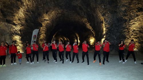 Dünya Şampiyonası Hazırlıkları Dünya şampiyonasına hazırlanan Savate Combat Milli Takımı, Yer Altı Tuz Şehri'ni ziyaret ederek yerin 150 metre altında antrenman yaptı. Hititler döneminden beri tuz elde edilen yaklaşık 5 bin yıllık mağarayı gezen sporcular, antrenörleri eşliğinde nefes egzersizi yaparak…
