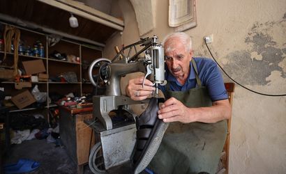Mardin'in Savur ilçesinde ayakkabı ustası Orhan Kurt, 5 metrekarelik iş yerinde 50 yılı aşkın süredir mesleğini sürdürüyor.