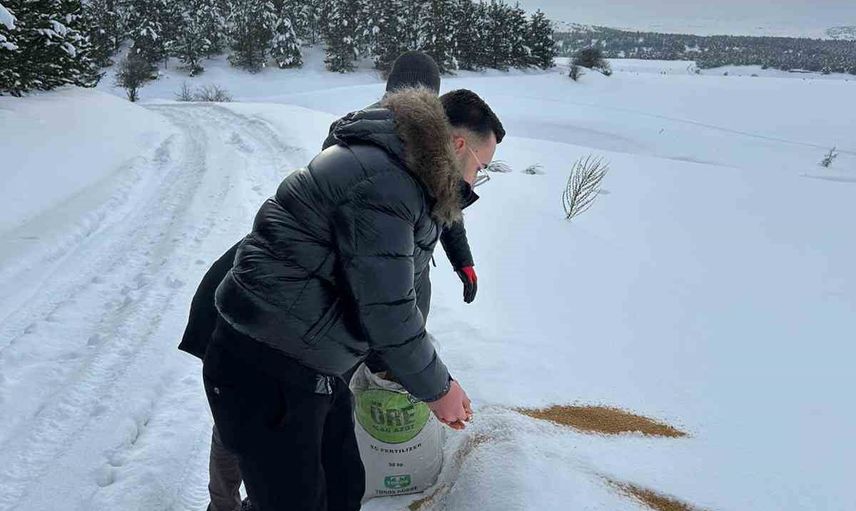 SİVAS CUMHURİYET ÜNİVERSİTESİ VETERİNER FAKÜLTESİ, AĞIR KIŞ ŞARTLARINDA BESLENMEKTE ZORLANAN YABANİ HAYVANLAR İÇİN DOĞAYA YEM BIRAKTI.