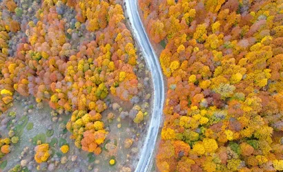 Bölgeden alınan dron görüntüleri, orman dokusunun geniş açılı perspektifini ve mevsime bağlı renk geçişlerini net biçimde ortaya koyuyor. Dron çekimleri, ağaçların oluşturduğu tabakanın biçimini ve renklerin estetik bütünlüğünü gözler önüne seriyor.