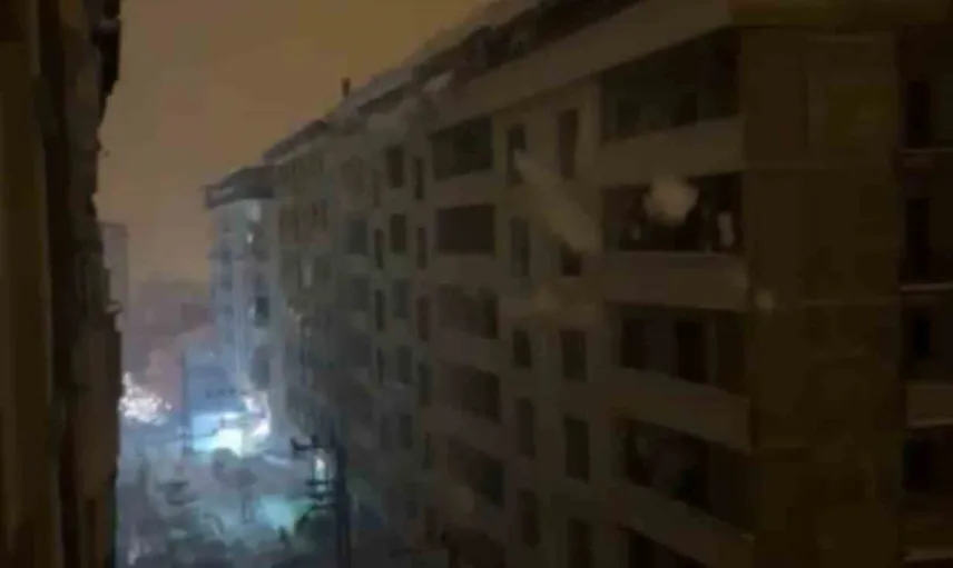 Güvenlik kameralarına yansıyan görüntülerde, kar kütlesinin düşmesiyle beton direklerin adeta ezildiği ve çevrenin kar tozuyla kaplandığı görüldü. Olay, Meteoroloji Genel Müdürlüğü'nün bölge için duyurduğu \"yoğun kar yağışı\" uyarılarının ardından kaydedildi.