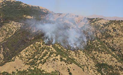 Hakkari'nin Şemdinli ilçesinde ormanlık alanda çıkan yangının söndürülmesi için helikopter destekli çalışma yürütülüyor.