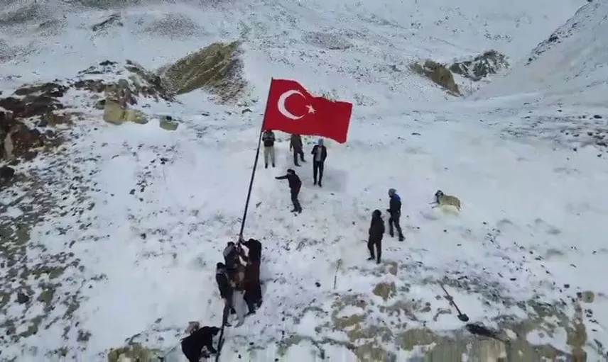 ERZURUM’UN ŞENKAYA İLÇESİNE BAĞLI GÖREŞKEN MAHALLESİ’NDE, TÜRK BAYRAĞI KÖYÜN EN YÜKSEK NOKTASINA GÖNDERE ÇEKİLDİ.