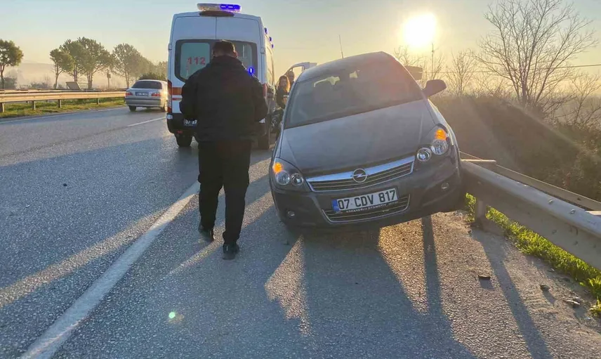 Antalya'nın Serik ilçesinde, Serik - Manavgat D 400 kara yolu üzerinde sabah saatlerinde iki otomobilin karıştığı kaza meydana geldi. Kazada araçlardan biri demir bariyerin üzerinde asılı şekilde kaldı.