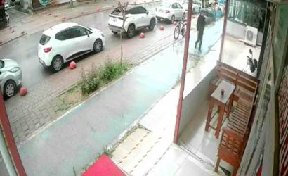 Güvenlik kameralarına yansıyan görüntülerde şüphelinin bisikletle geçtiği anda park halindeki motosikleti fark ettiği; bir süre etrafı kolaçan ettikten sonra geldiği bisikleti bırakarak motosiklete binip hızla uzaklaştığı görülüyor. Bu anlar, zanlının eşya değiştirme davranışını somut şekilde gözler önüne serdi.