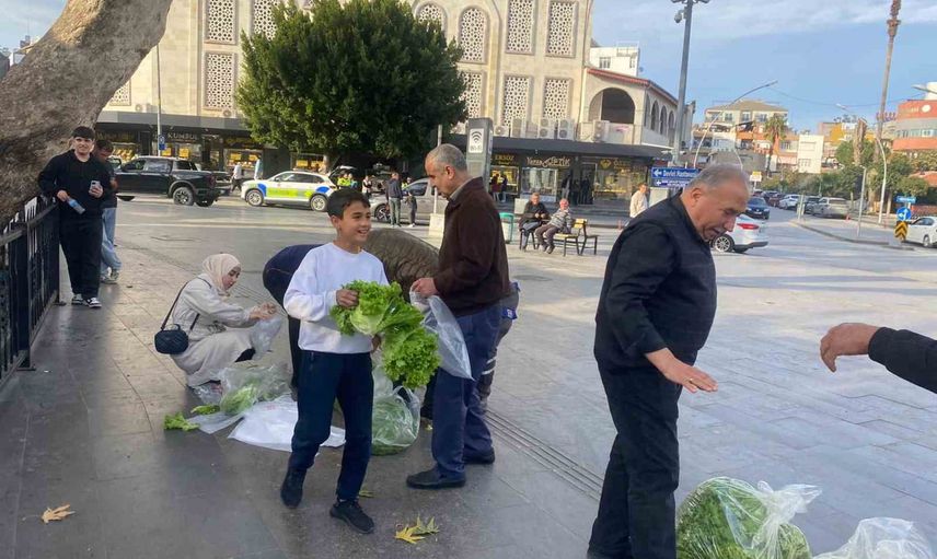 Serik'te çiftçi çöpe gitmek üzere olan 200 marulu ücretsiz dağıttı