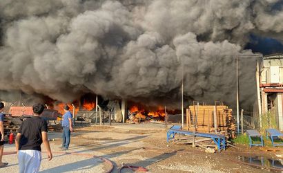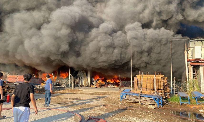 Antalya'nın Serik ilçesinde iki firmaya ait depolarda çıkan yangına itfaiye ekipleri müdahale ediyor.
