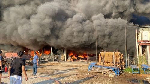 Yukarı Kocayatak Mahallesi'nde iki firmaya ait depoda çıkan yangına Antalya'daki farklı itfaiye ekipleri müdahale ediyor; yangın bir depoya sıçradı.