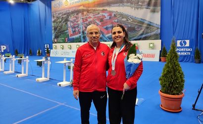 Hırvatistan'da devam eden Avrupa Havalı Silahlar Şampiyonası'nda milli atıcı Şevval İlayda Tarhan (sağda), kadınlar 10 metre havalı tabanca solo kategorisinde bronz madalya elde etti.