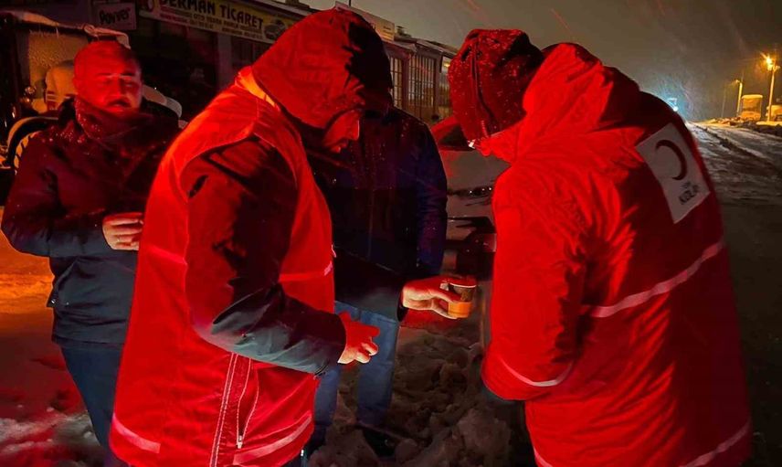 KASTAMONU'NUN SEYDİLER İLÇESİNDE KAR SEBEBİYLE ULAŞIMA KAPATILAN YOLDA AFAD VE KIZILAY EKİPLERİNDEN VATANDAŞLARA SICAK ÇORBA VE ÇAY İKRAM EDİLDİ.