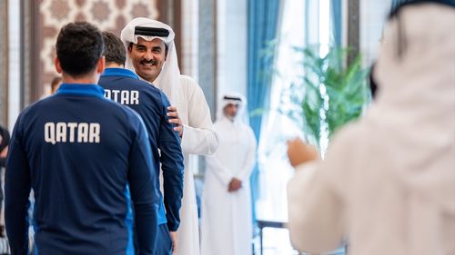 Şeyh Temim bin Hamed Al Sani, 2026 FIFA Dünya Kupası'na katılmayı garantileyen Katar Milli Futbol Takımı'nı Lusail Sarayı'nda kabul ederek başarılarını kutladı.