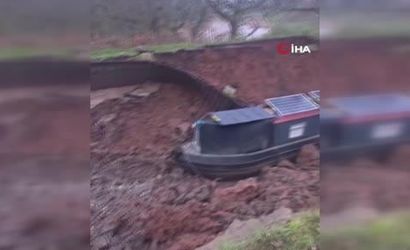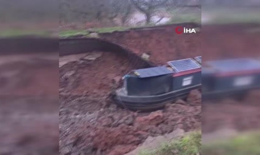 İngiltere'nin West Midlands bölgesindeki Shropshire Kanalı'nda "set çökmesi" sonucu devasa bir obruk oluşurken, çok sayıda tekne çukura düştü.