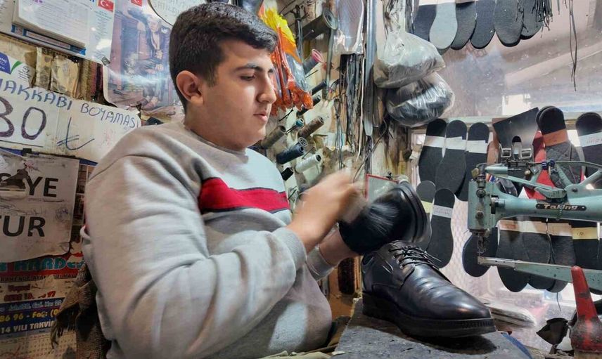 Siirt'te 16 yaşındaki Muhammed Nuri Soysal, 10 yaşından itibaren dedesinin yanına giderek öğrendiği ayakkabı tamirciliğini, dükkanı devralarak sürdürüyor. Soysal, iş hayatına atılırken aynı zamanda eğitimine de devam ediyor.